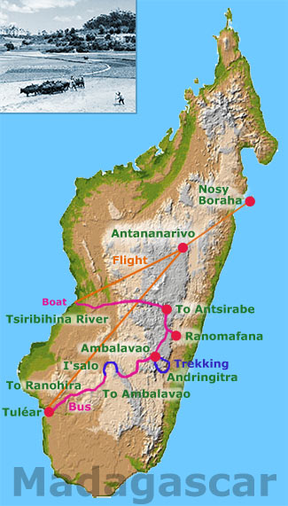 Madagascar is the world's fourth largest island, after Greenland, New Guinea and Kalimantan (Borneo). Located 400 kilometers off the south-east coast of Africa, the island extends 1,550 km in length and 550 km at its largest width.