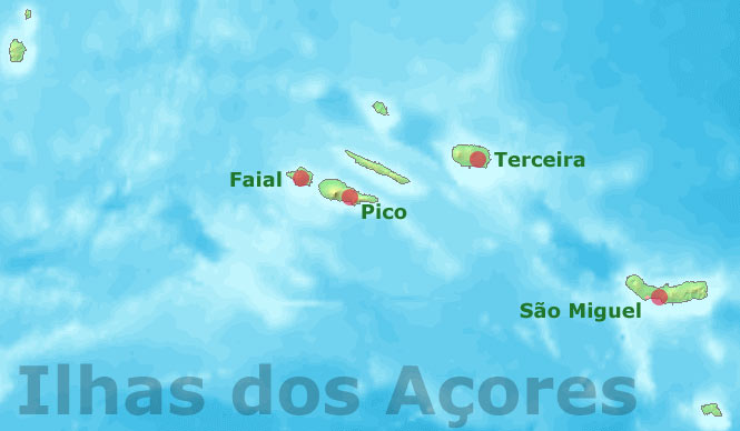 São Miguel Ponta Delgada, Sete Cidades, Vila Franca do Campo, Furnas, and Ribeirinha |